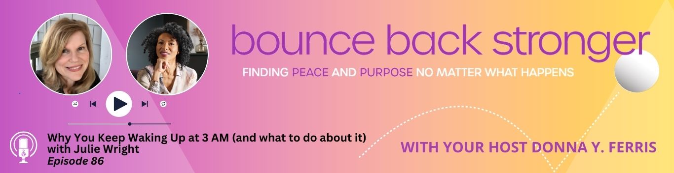 In this episode of Bounce Back Stronger, host Donna Ferris speaks with Julie (author of The Natural Sleeper and founder of We Sleep) about what’s really happening inside your brain and nervous system when insomnia strikes in the early morning hours.